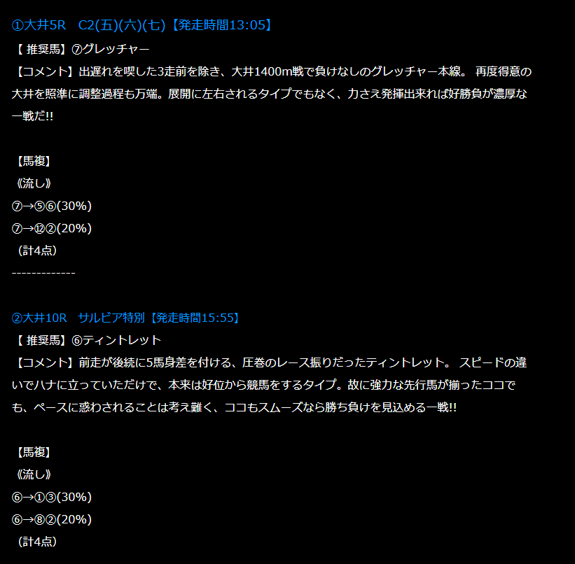 どっちも不的中でダメでした